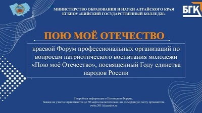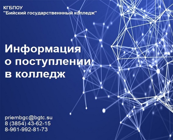 Краевое государственное бюджетное профессиональное образовательное учреждение «Бийский государственный колледж» — передовое многопрофильное образовательное учреждение Алтайского края, удовлетворяющее запросы регионального рынка труда в профессиональных кадрах.