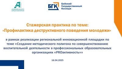 На базе Бийского государственного колледжа состоялась стажерская практика для педагогов и специалистов профессиональных образовательных организаций по теме «Профилактика деструктивного поведения молодежи». Мероприятие организовано в рамках реа ...