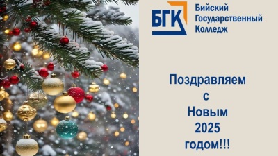 Бийский государственный колледж поздравляет всех с наступающим Новым 2025 годом! Пусть этот год станет для вас символом новых начинаний и ярких свершений. Желаем вам здоровья, счастья и благополучия в каждой сфере жизни. Пусть сбудутся ...