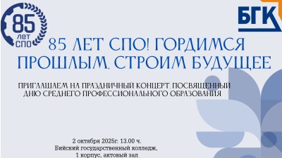 Накануне 2 октября в Бийском государственном колледже прошло знаковое праздничное мероприятие «85 лет СПО! Гордимся прошлым! Строим будущее!», посвященное 85-летию среднего профессионального образования. Это событие собрало студентов, преподав ...