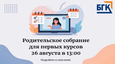 Внимание родителей 1 курса! 26 августа в 13.00 состоится родительское собрание! Собрание пройдет в прямом эфире в официальной группе в ВКонтакте Бийский государственный колледж по ссылке https://vk.com/bgk_official_22?from=groups На все вопрос ...