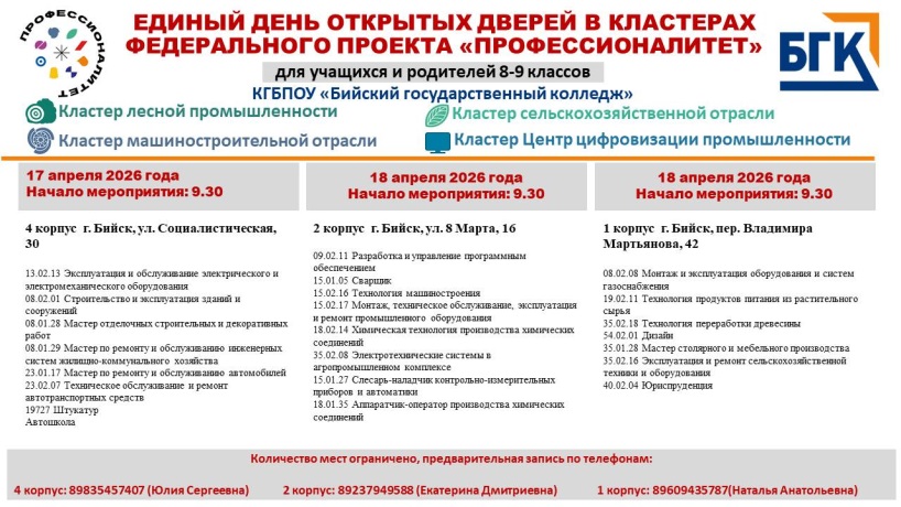 Единый день открытых дверей для учащихся и родителей 8-9 классов в кластерах ФП «Профессионалитет»