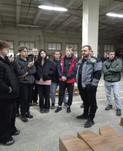 Ребята встретились со специалистами предприятия: начальником цеха А. Габайдулиным и мастером участка А. Калининым. Специалисты фабрики наглядно продемонстрировали студентам, как организован производственный процесс на предприятии, как работают станки в цехах. Ребята подробно расспрашивали начальника цеха Габайдулина А. об ассортименте производимой продукции, интересовались ценой готовых изделий и сроками их изготовления.