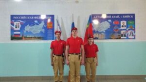 В 3 учебном корпусе флаг Российской Федерации установили бойцы юнармейского отряда «Гвардейцы», участники Парада Победы в составе городской колонны Юнармия в 2023 году: