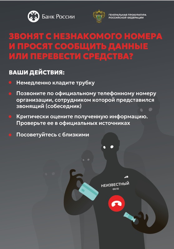 В связи с активизацией мошенников, использующих телекоммуникационные технологии для хищения денежных средств, разрабатываются информационно-разъяснительные материалы и социальная реклама по данной тематике, в том числе, органами прокуратуры, Банком России, Минцифры России, МВД России, а также финансово-кредитными учреждениями, операторами связи и компаниями, осуществляющими деятельность в сфере информационной безопасности.
