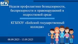 В Бийском государственном колледже по плану работы социального педагога с 08 по 13 сентября 2025 года пройдет Неделя профилактики безнадзорности, беспризорности и правонарушений в подростковой среде.